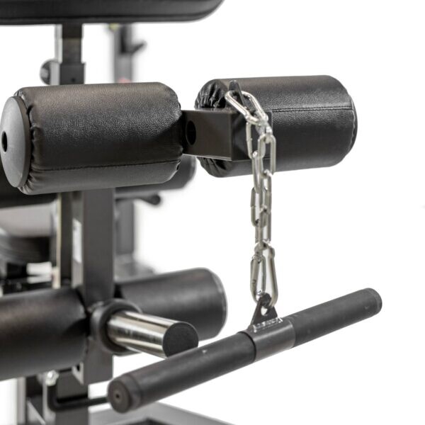 Compatible con el banco Olympic Rack G510, este accesorio es ideal para un entrenamiento completo de la parte superior e inferior del cuerpo. El extensor de piernas se enfoca en ejercitar los cuádriceps y los isquiotibiales.
